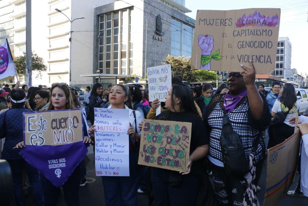 “Nos reunimos para levantar uma única voz: unidade, justiça e resistência! Contra o abandono”, afirmou a ativista Cristina Cachaguay, da organização Mujeres por el Cambio (Mulheres pela Mudança).